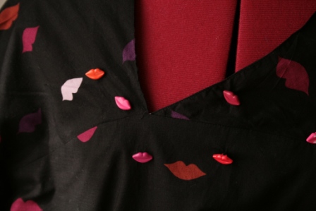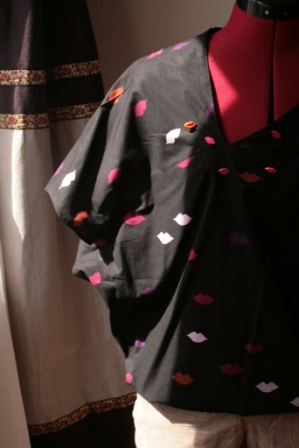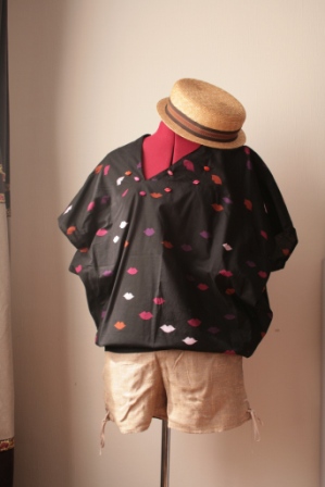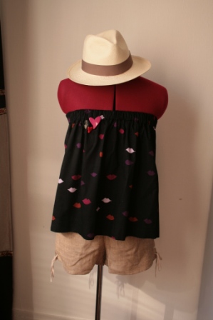 J’ai acheté ce tissu au marché St Pierre chez Moline à 6€ le mètre. Autant dire une super affaire. Pour 9€ j’ai pu ma faire deux hauts,plus les boutons achetés à La Droguerie.