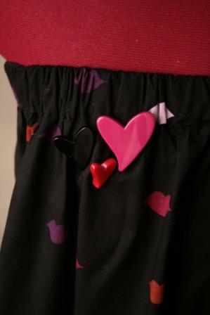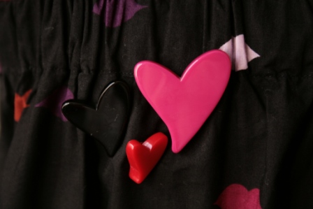 Pour les boutons coeur, j’ai coupé le pied à la pince coupante et ai collé des aimants qui permettent de fixer la broche sur du tissu et de l’enlever pour le nettoyage ou bien la mettre ailleurs. c’est super pratique. J’ai trouvé les aimants dans ma petite boutique L’Atelier rue des Plantes, 14e.