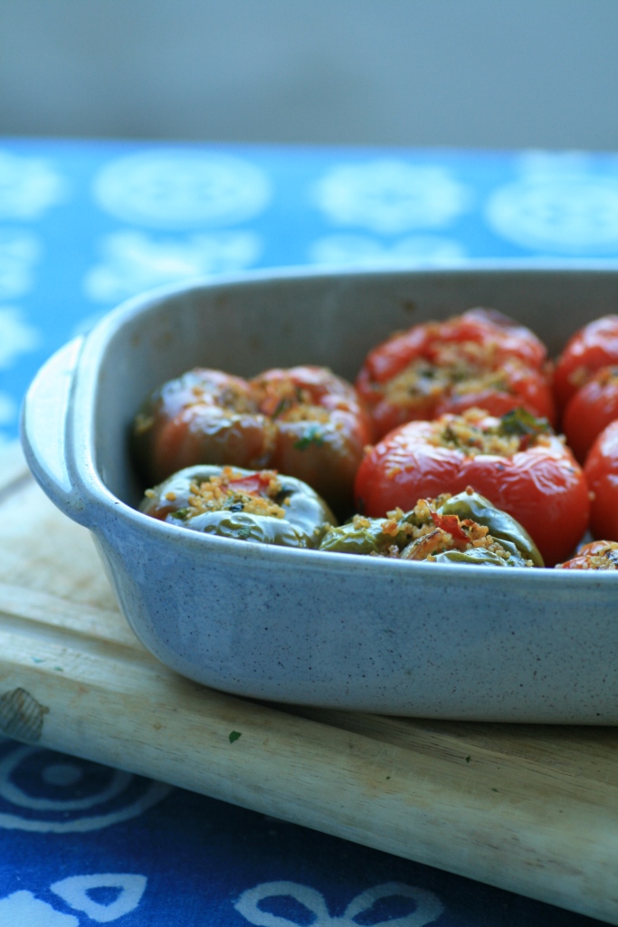 Enfourner à 200°C 40min env. Jusqu’à ce que les poivrons soient bien fondants.
