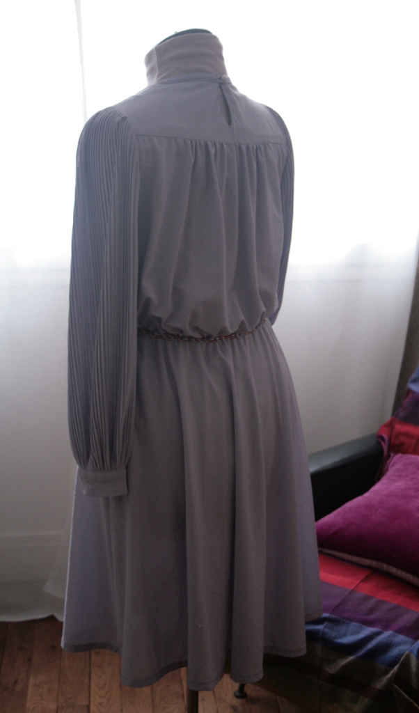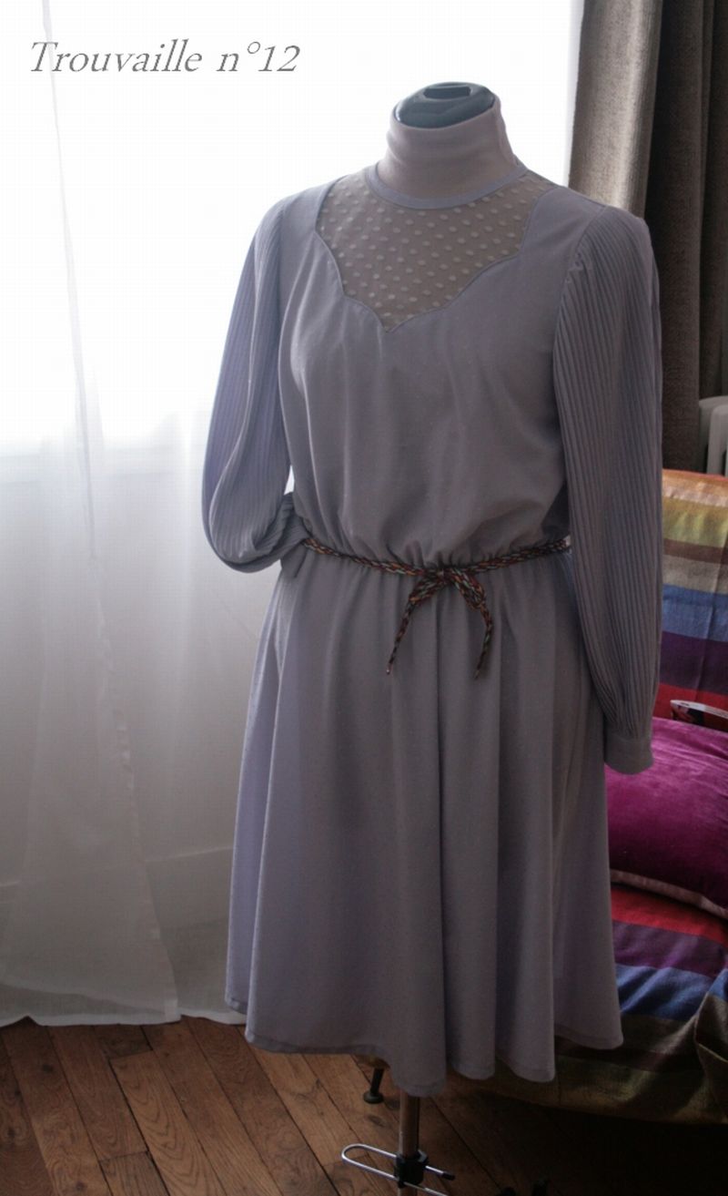 Il paraît que c’est le retour des années 70′? et bien c’est le moment ou jamais de mettre ma robe chinée il y a quelques années. Je l’avais raccourcie et j’ai souligné la taille avec un joli galon acheté à la mercerie Moline au marché St Pierre parce qu’il me plaisait et bien il vient de trouver son utilité.