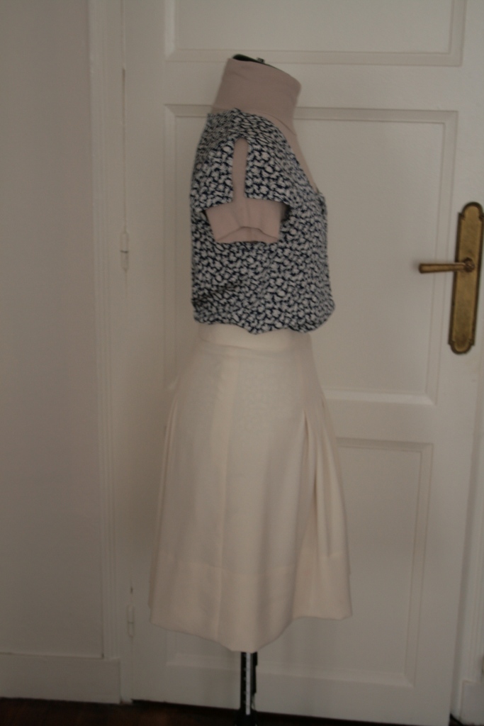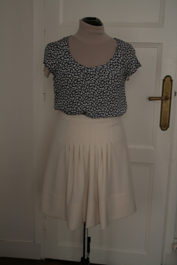 Cet hiver il y a pas mal de jupette à plis creux et moi j’vais envie d’une jupe blanc cassé avec un peu de volume. je suis partie d’un patron de base burda.