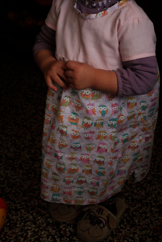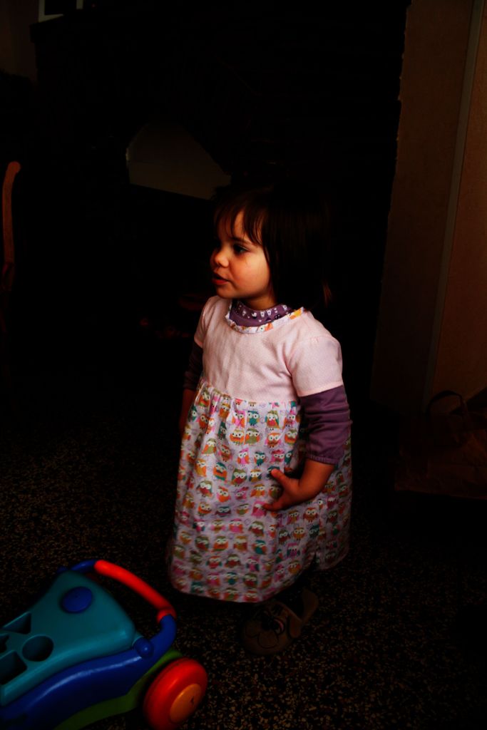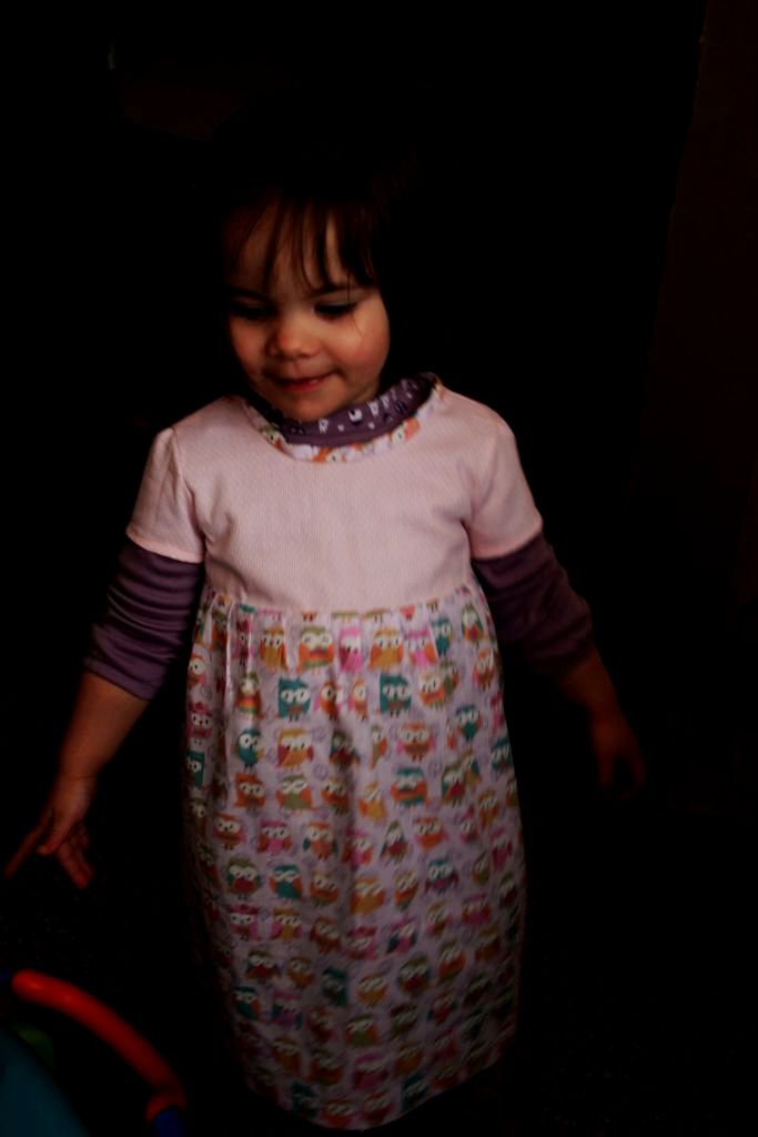 Cette année mes petits cousins ont deux ans et pour la petite Jade j’ai cousu une robe de fillette tout en rose avec un imprimé Chouette sur lequel j’ai craqué au marché St Pierre. C’est un patron burda de base que j’ai un peut modifié pour l’encolure pour faire un rappel de biais avec le tissu imprimé.
