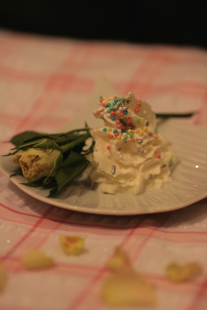 La petite idée qui a germé de ma tête a été de faire des bouchées fourrée à la chantilly à la rose et fermée par un lien en bonbon qui pique.