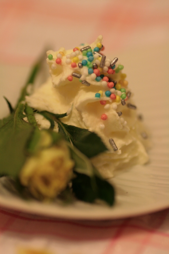 Autant vous dire que mon niveau de concentration au boulot mardi était à son maximum pour trouver la super bonne idée…je voulais faire quelque chose sous une forme différente et pourquoi pas avec de la rose. Après brainstorming collectif des copines 3 points pour la rose et 2 pour la crème de marron (en plus je déteste ça, donc c’était perdu d’avance, désolée les copines;-))
