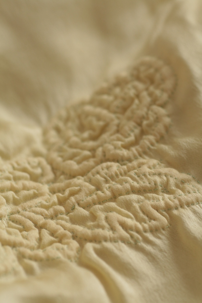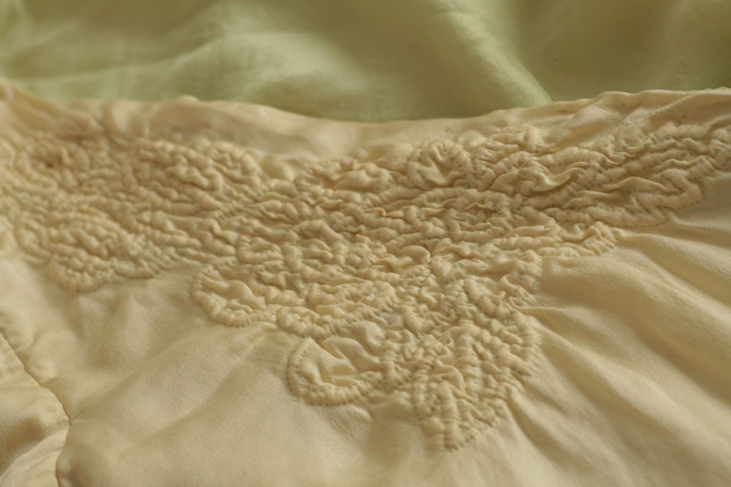 Ce que j’ai chiné ce dimanche aux Puces de Vanves, c’est cette veste jaune pâle aux manches pagodes. Ça s’appelle une liseuse et ça servait au début du siècle à couvrir les épaules des dames qui avaient froid en chemise de nuit car leurs chambres n’étaient pas chauffées….n’étaient-elles pas bien élégantes?