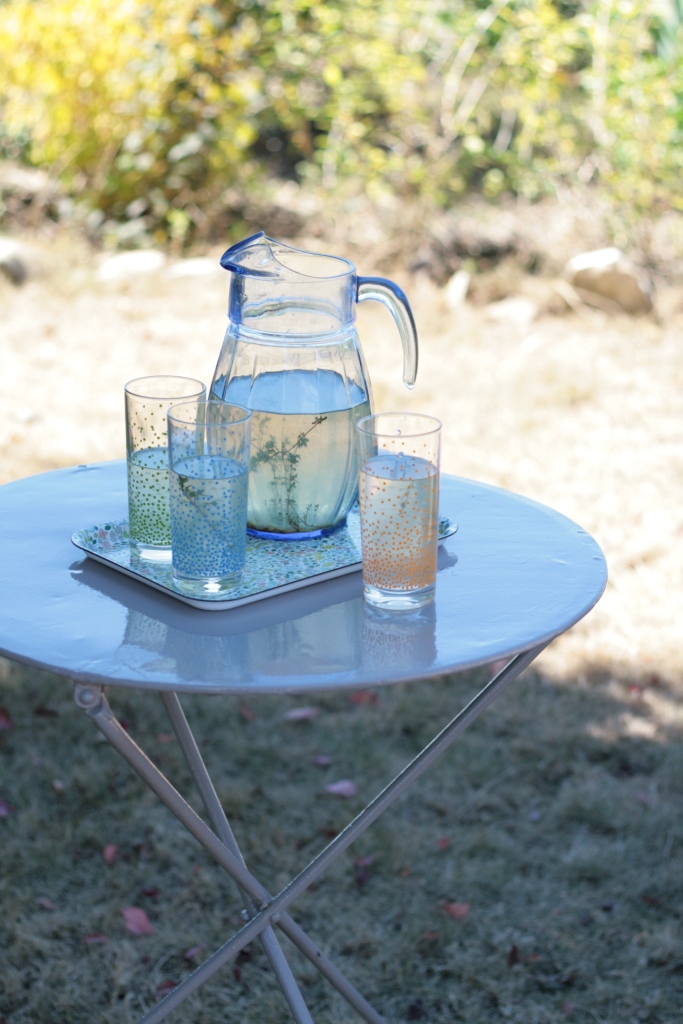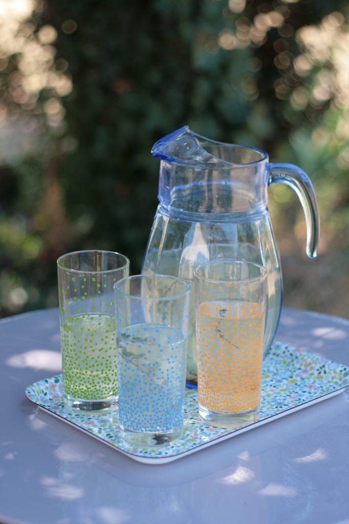1. C’est une bien jolie vaisselle que tu as là ! Et la citronnade, c’est MA boisson de l’été, je ne la fais pas comme toi (j’aime bien quand ça pétille !) mais j’adore ça 😉