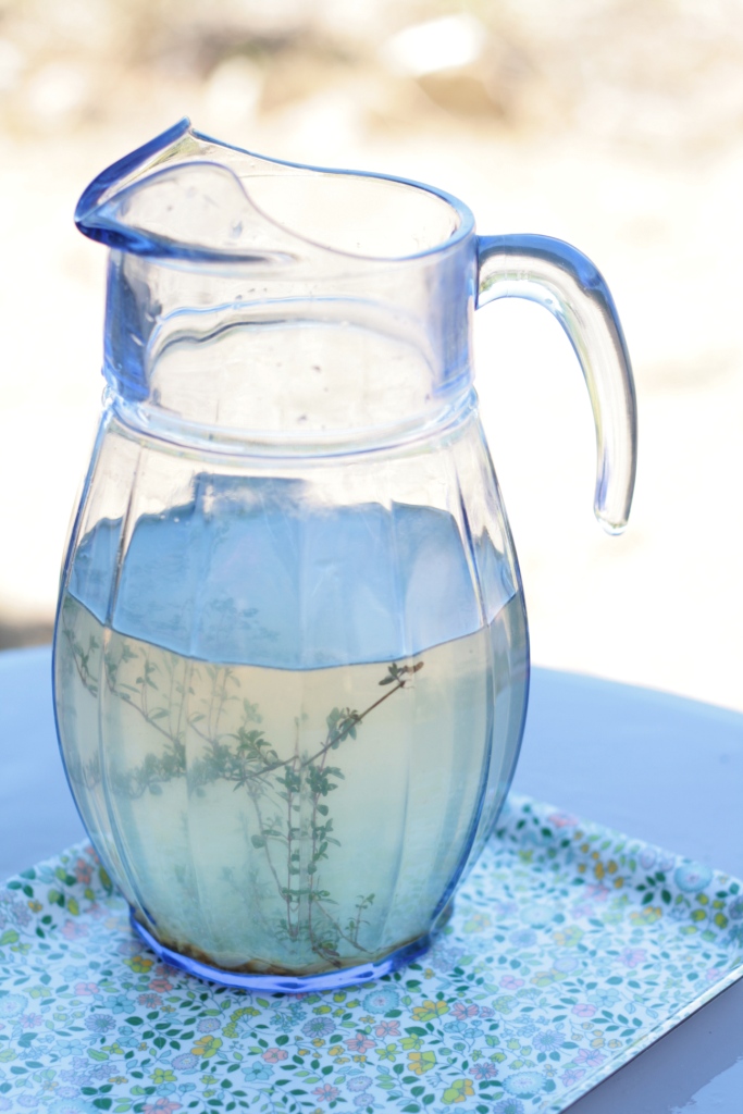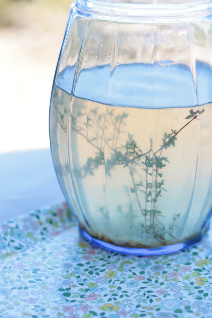 Je l’ai un peu twisté en faisant infuser du thym-citron et en utilisant du sucre rapadura qui donne un petit goût de réglisse (on le trouve en épicerie bio).