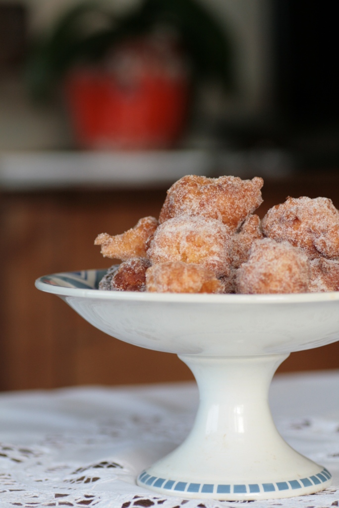 Déposer sur du sopalin pour absorber l’excédent d’huile. Laisser refroidir et enrober dans du sucre.