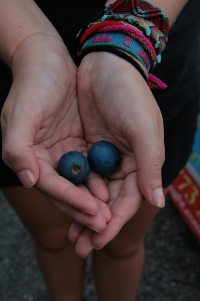 Bon, on n’a pas le droit de transporter de plantes ni de fruits et légumes quand on prend l’avion, j’ai néanmoins rapporté ces deux jolies baies aux reflets bleus  phosphorescents -sans m’en rendre compte à vrai dire, j’avais oublié qu’ils étaient dans mon sac à main- et les plantes grasses offertes lors du mariage. Comme quoi le contrôle en douane ce n’est plus ce que c’était! 😉