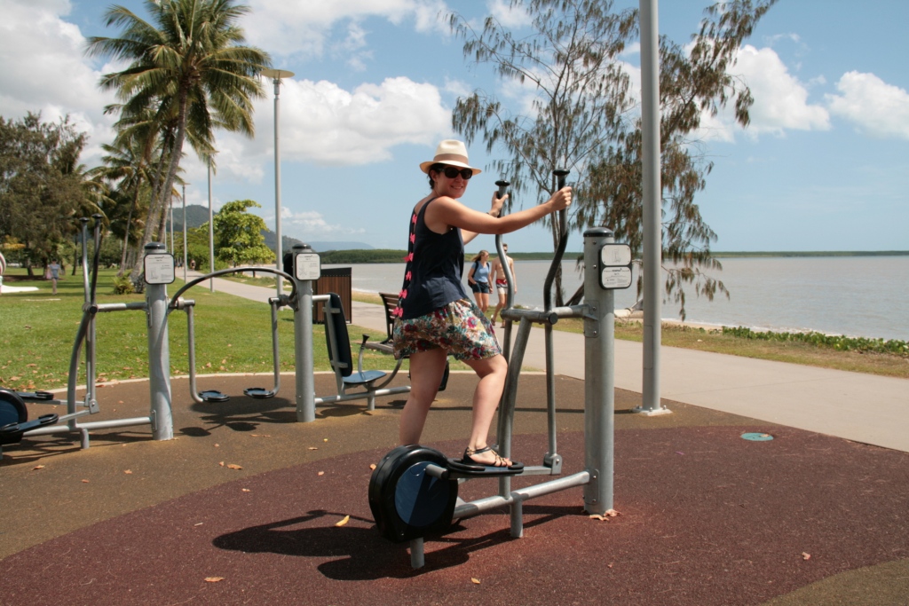 On a commencé notre périple à Cairns au Nord de la côte Est à 2500km de Sydney. Début octobre, c’est le printemps, il fait déjà 30°C, ce qui n’est pas pour me déplaire et me sentir de suite en vacances. Par contre ce qui a été assez déroutant c’est qu’à 18h il fait nuit noire, à 17h le soleil se couche d’un coup. A 17h30 on voit des groupes de personnes sur l’esplanade à Cairns en train de préparer le BBQ – sport national- on se demande si c’est le déjeuner, le goûter…et bien non c’est l’heure du dîner, normal quoi!