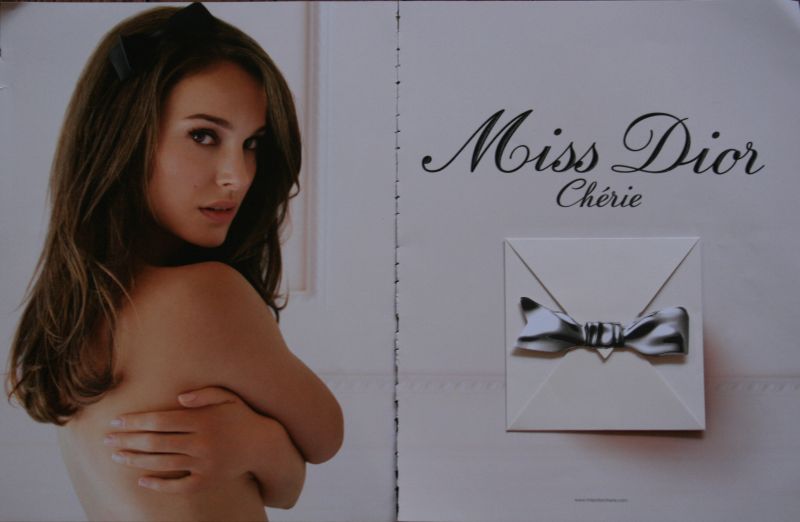 La première est la pub pour Miss Dior Chérie avec Natalie Portman qui est simplement sublime sur ce visuel; son air espiègle, l’oeil de biche et son ruban dans les cheveux. J’ai totatalement craqué sur la petite enveloppe avec le noeud qu’on ouvre comme un message d’amour et dans lequel on découvre l’effluve comme dans un écrin. En plus j’aime beaucoup ce parfum je l’avais déjà eu.