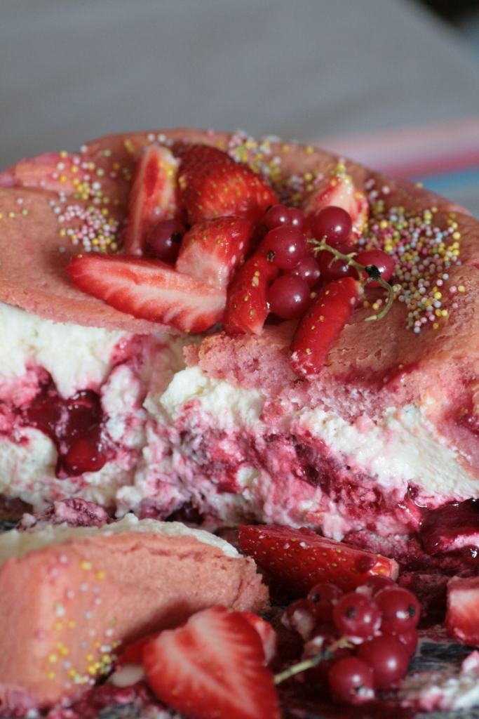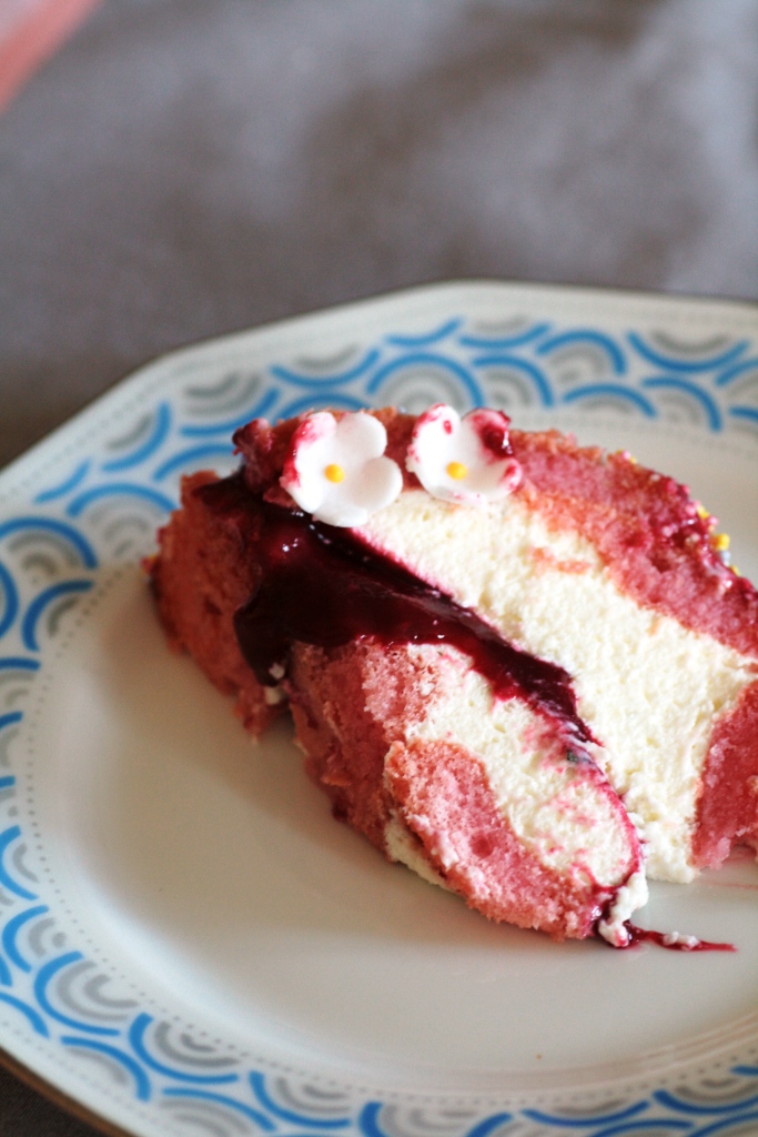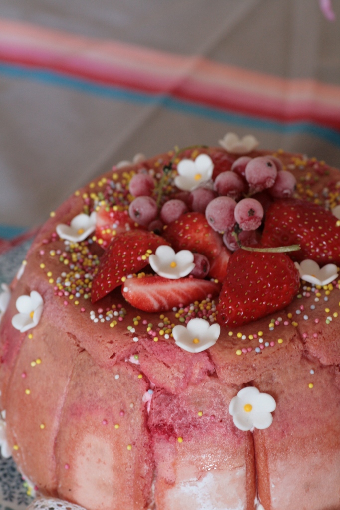 Voici la deuxième partie des charlottes réalisées le weekend de Pâques pour l’anniversaire de mon frère. Une version au fromage blanc (j’ai utilisé de la faisselle) inspirée d’une recette Ladurée. Je n’ai pas fait le biscuit à la cuillère moi même car pas le temps mais l’ai remplacé par des biscuits roses de Reims.