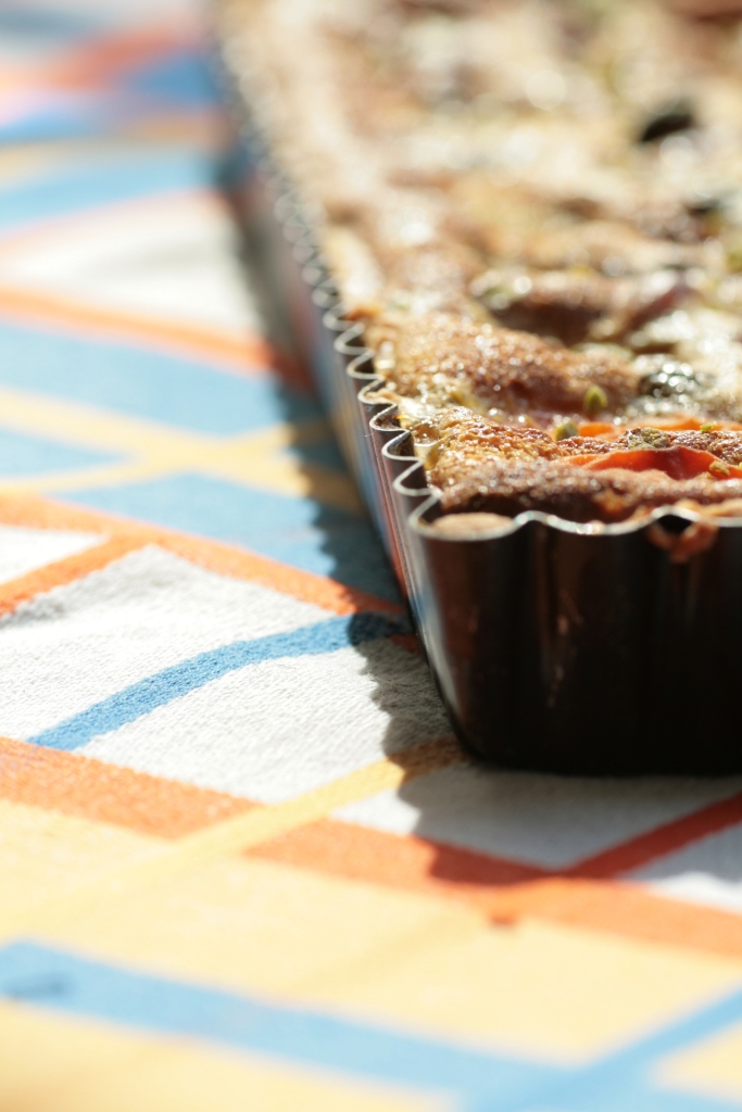 Battre la crème entière liquide et les œufs avec la pâte de pistache (ou 50g de poudre d’amandes et 1cuillérée à soupe de sucre.)