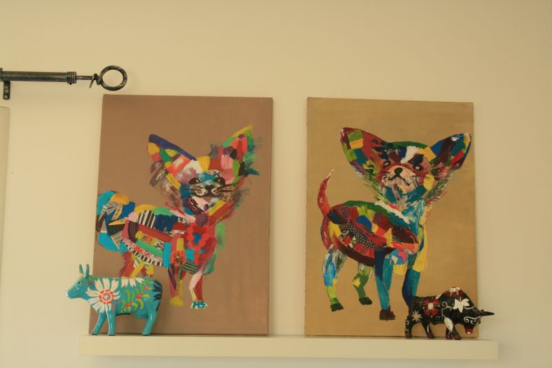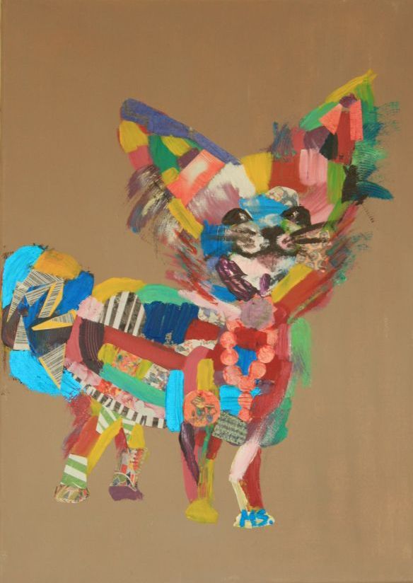 Première étape: une recherche de chien sur internet, j’ai opté pour un chihuahua. Alors je suis pas trop chien à la base et encore moins petit chien (qui sert à rien) mais justement j’ai trouvé qu’il méritait toute sa place sur une toile peinturluré et collé complètement dérisoire avec ses grandes oreilles, ses petites pattes toutes maigres et sa tête à claque. Là au moins il ne jappe pas et ne s’excite pas. Vous l’aurez compris le chien chien à sa mémère c’est pas mon truc.