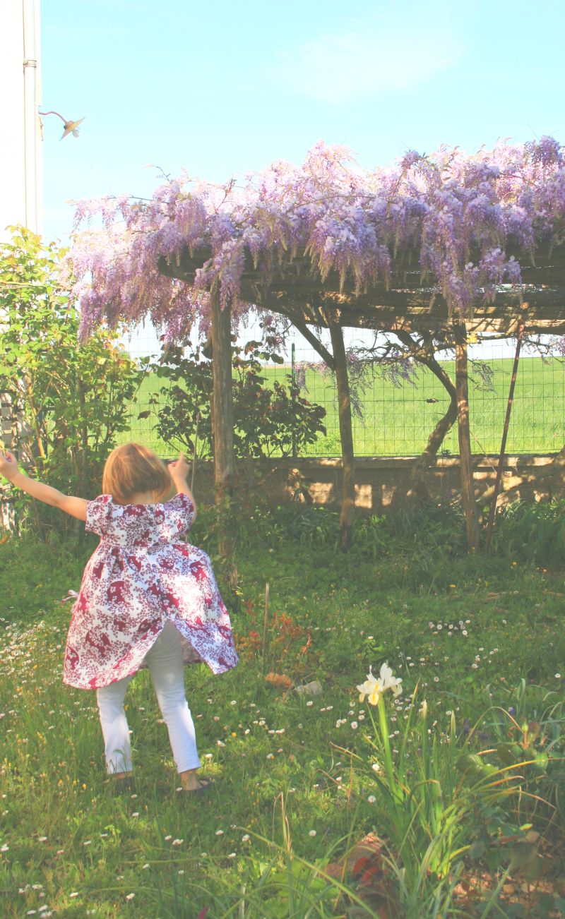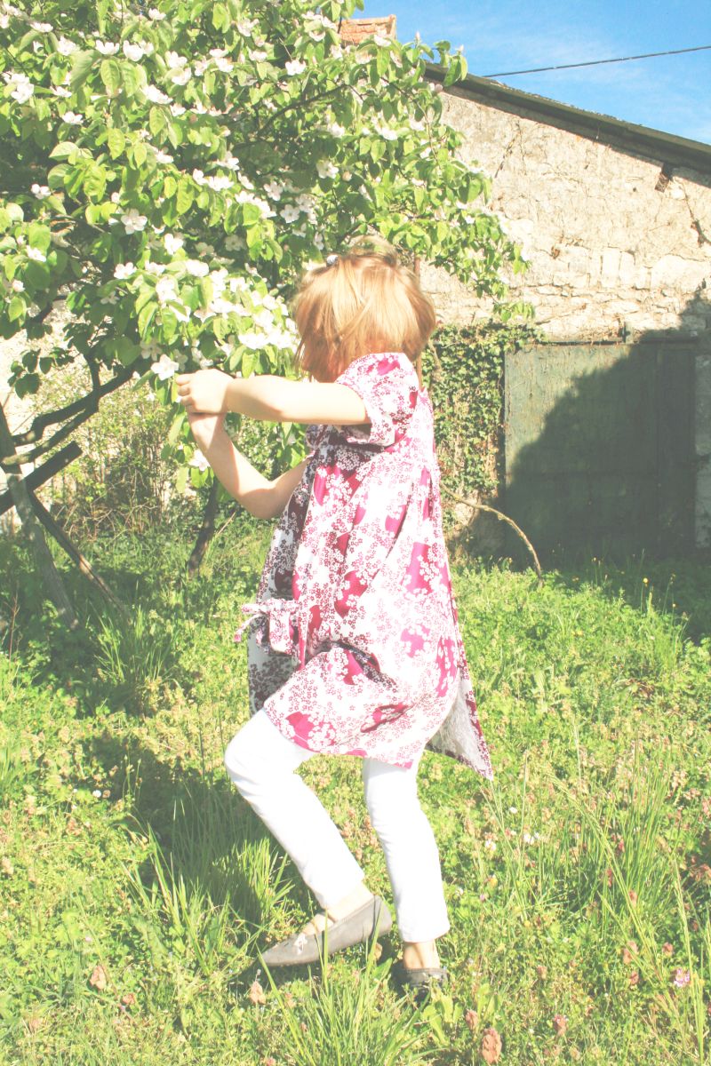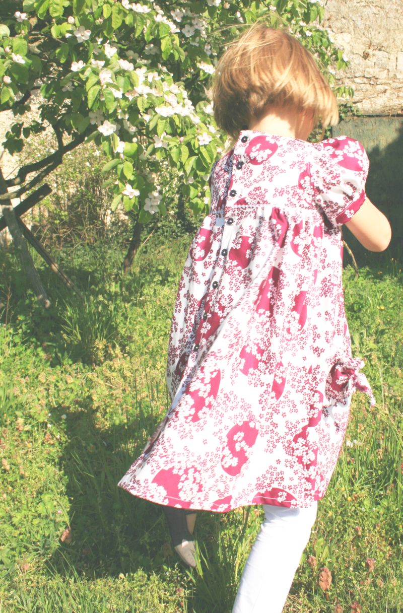 J’ai fait cette petite robe fleurie pour ma cousine de 5 ans, qui est dans sa période princesse à fond, elle était ravie et fière de pouvoir tournoyer avec et de faire la pause comme une pro.