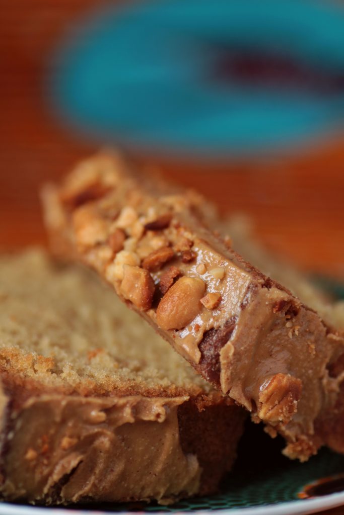 Je vous propose UN DELICE de gâteau qui n’aura pas le temps de dessécher car il sera dévoré bien avant. J’ai repris la base du quatre quart que j’avais cuisiné ici en réduisant le beurre et le sucre car le beurre de cacahuète ajoute de la matière grasse et du sucre.