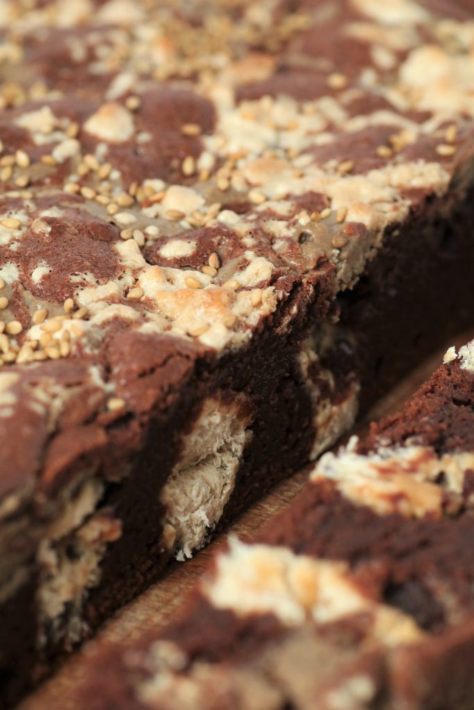 Ce browniens est un mélange un peu sucré/ salé absolument addictif apporté par l’halva.