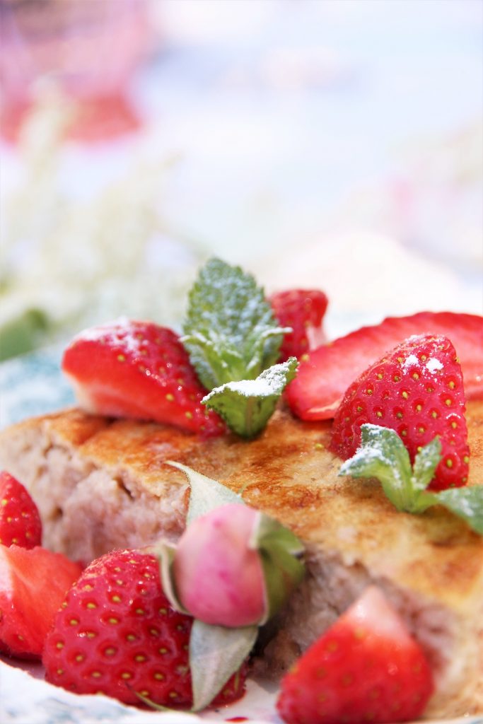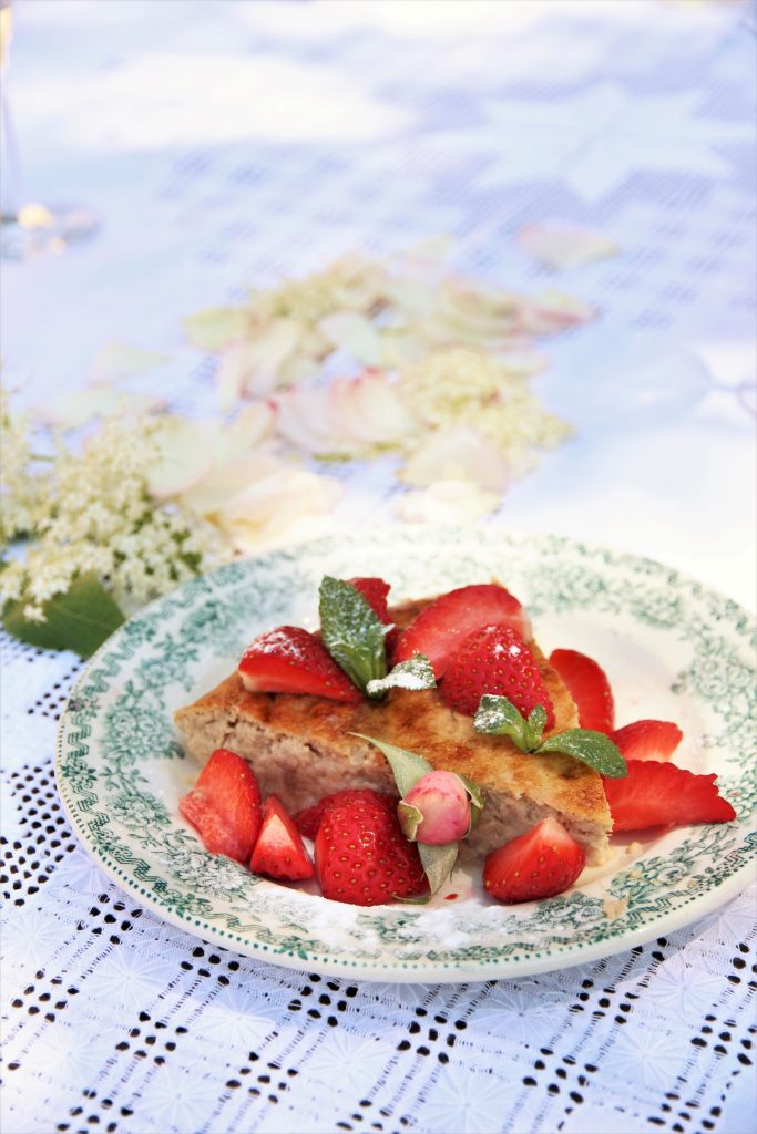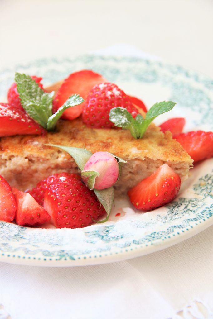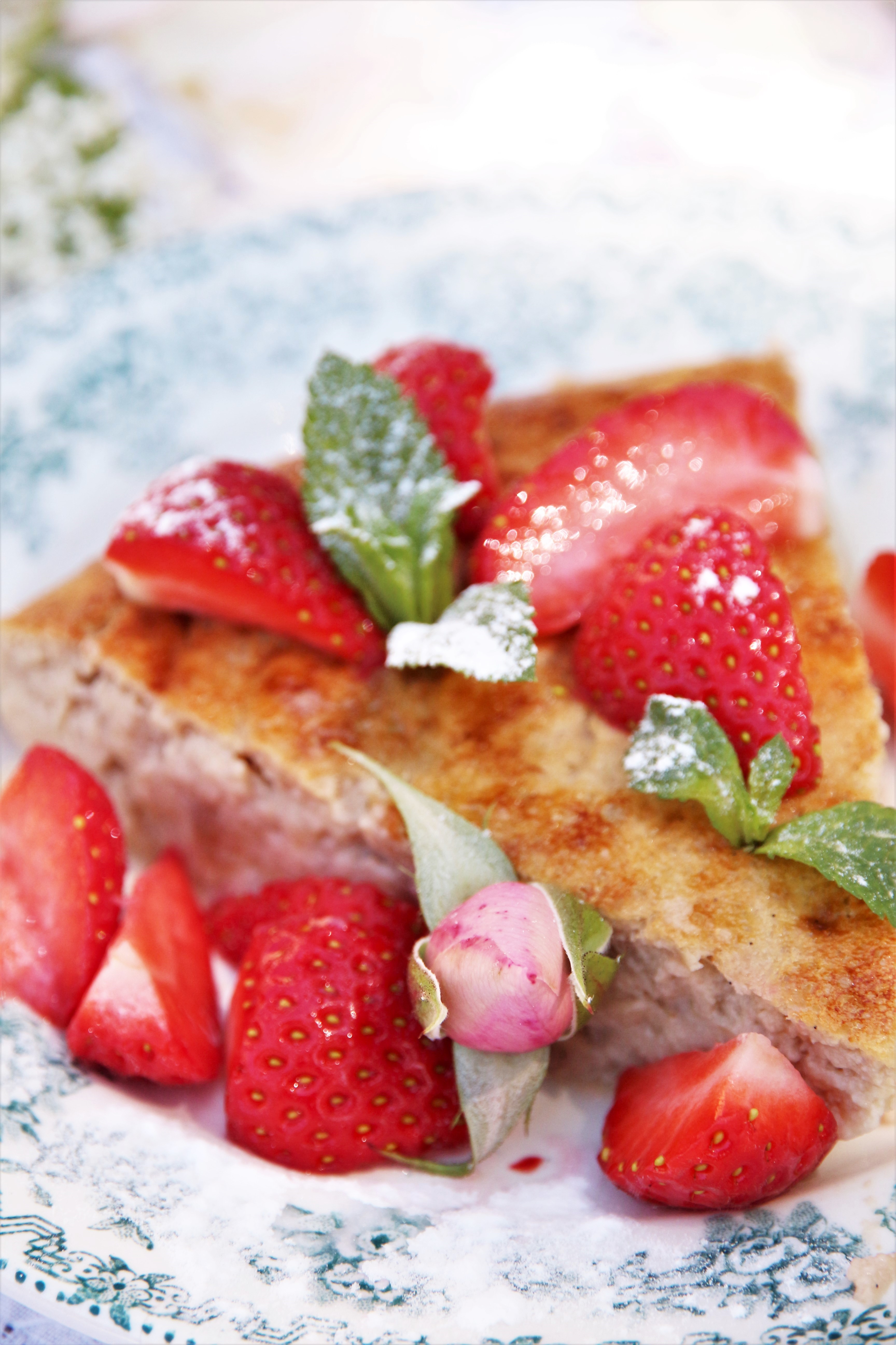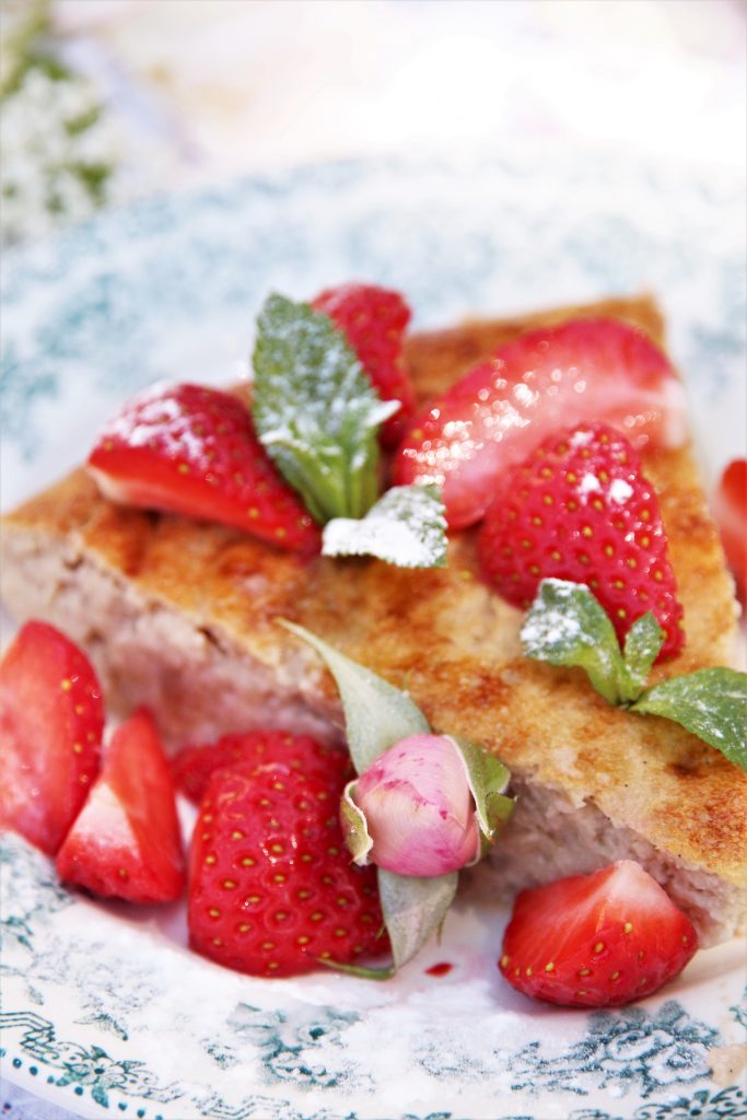 Laisser refroidir avant de démouler, garnir le centre avec des fraises fraîches .