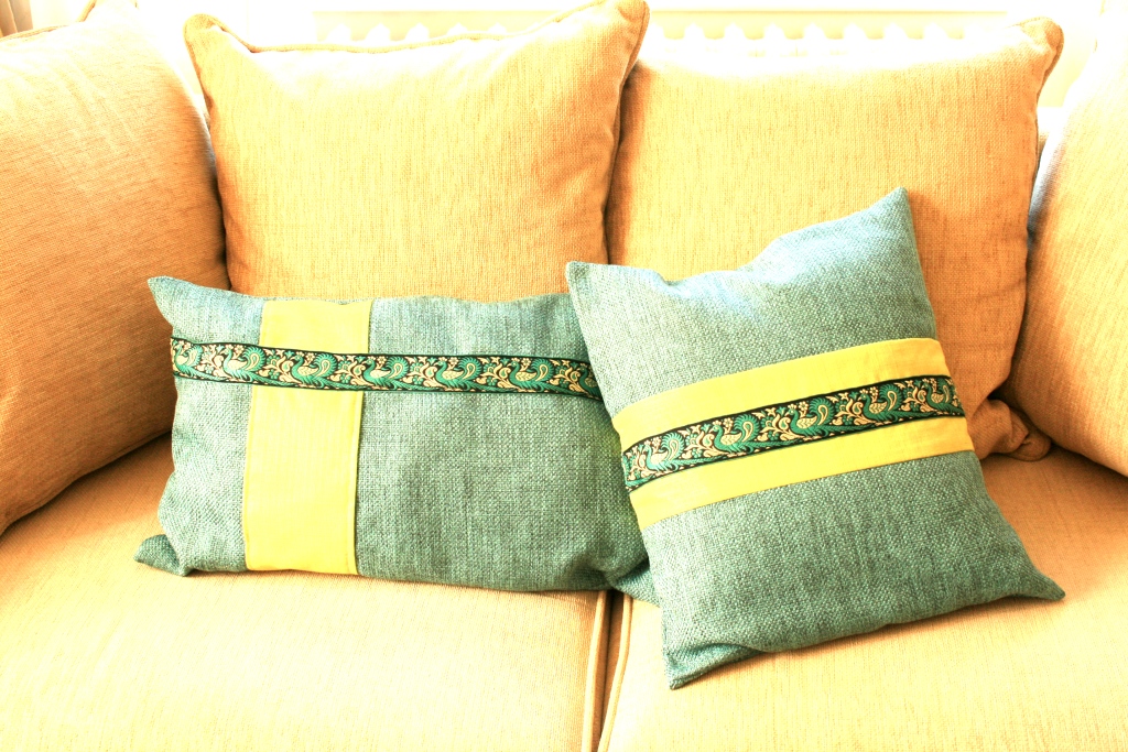 Avec le reste de tissu, j’ai cousu ces deux coussins pour orner le lit et s’y lover à l’heure de la sieste avec les bruit des oiseaux en arrière fond la fenêtre ouverte.